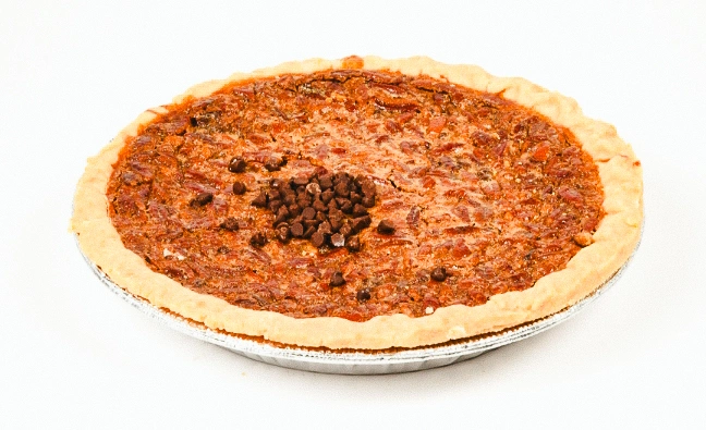 Our proprietary pecan filling containing a hint of Kentucky Bourbon mixed with chocolate chips and placed in our buttery Homemade crust shell.