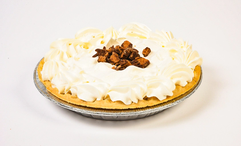 Our proprietary coconut pudding in our buttery Homemade crust shell topped with our signature meringue topping. Always a best seller!